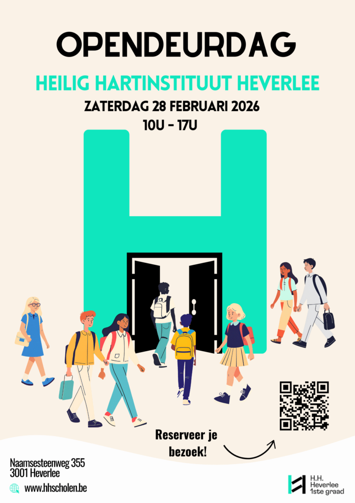 Op zaterdag 28 februari 2026 verwelkomen we je graag in het Heilig Hartinstituut Heverlee. Tussen 10.00 uur en 17.00 uur kan je op verkenning komen in onze eerste graad. We nemen je met plezier mee doorheen onze school en geven je graag alle informatie die je wenst om een goede start te maken in het secundair. Die dag kan je ook deelnemen aan tal van activiteiten en een praatje maken met leerlingen en leerkrachten.
